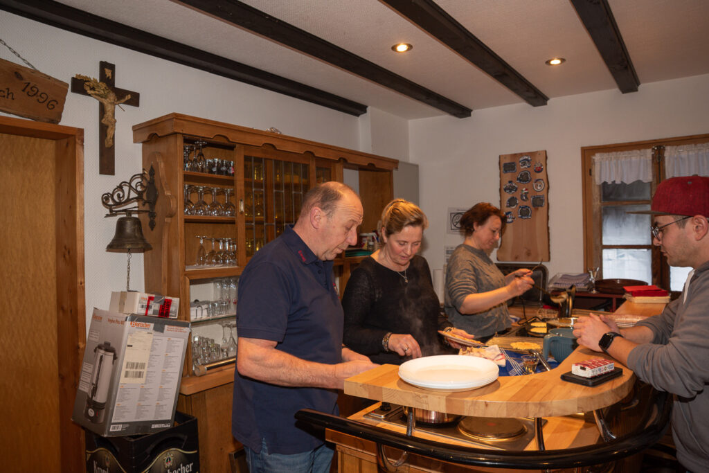 Ab 15:00 Uhr füllte sich das Dorfhaus mit gut gelaunten Gästen, die vom 1. Vorsitzenden der Dorfgemeinschaft höchstpersönlich mit einem kleinen Aperitif empfangen worden sind.