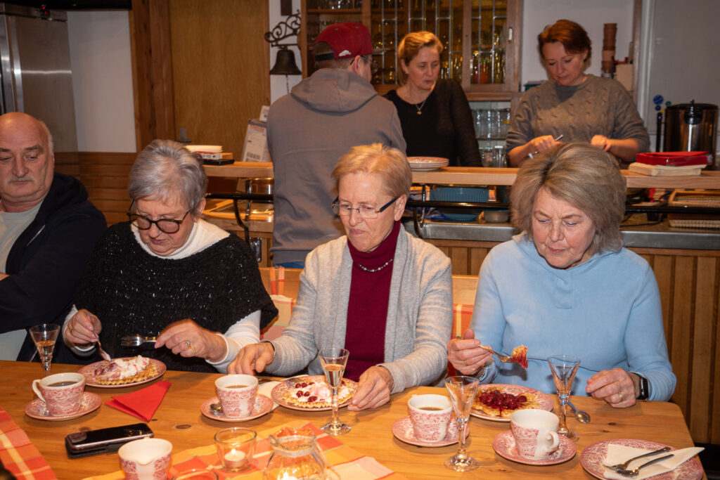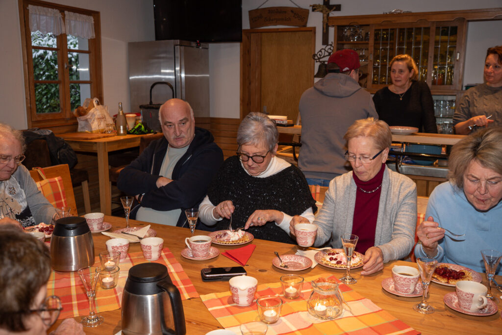 Bei frisch gebackenen Waffeln mit Sahne und heißen Kirschen sowie Kaffee kam sofort eine gemütliche Stimmung auf. In entspannter Atmosphäre wurde erzählt, gelacht und sich über alte und neue Geschichten aus dem Dorfleben ausgetauscht.