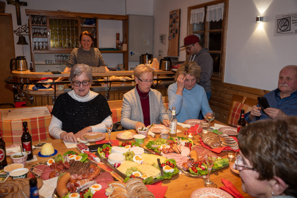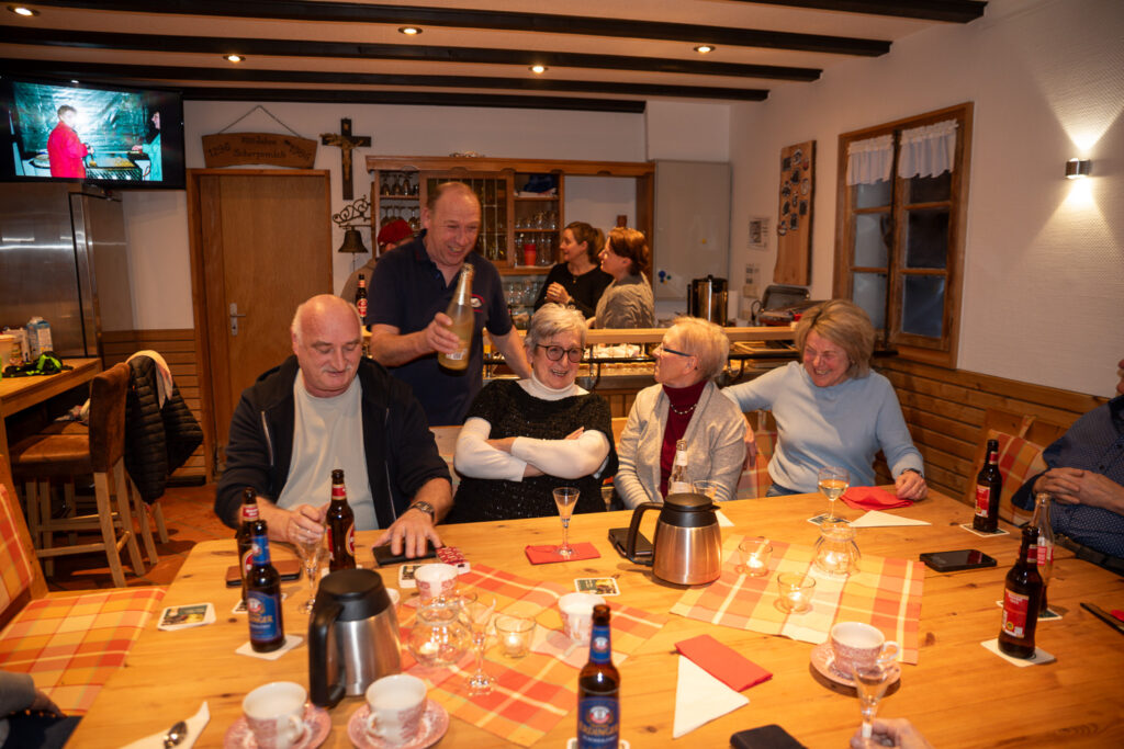 In der gemütlichen Runde begann schon bald ein besonderer Höhepunkt für alle Anwesenden: eine liebevoll zusammengestellte Diashow mit Bildern aus vergangenen Jahren. Fotos von Feiern, Ausflügen, Hochzeiten und vielen gemeinsamen Aktivitäten weckten zahlreiche Erinnerungen und sorgten für so manches Schmunzeln. Gemeinsam ließ man viele schöne Momente noch einmal aufleben.